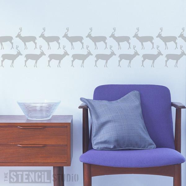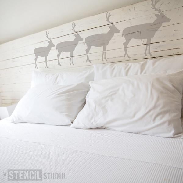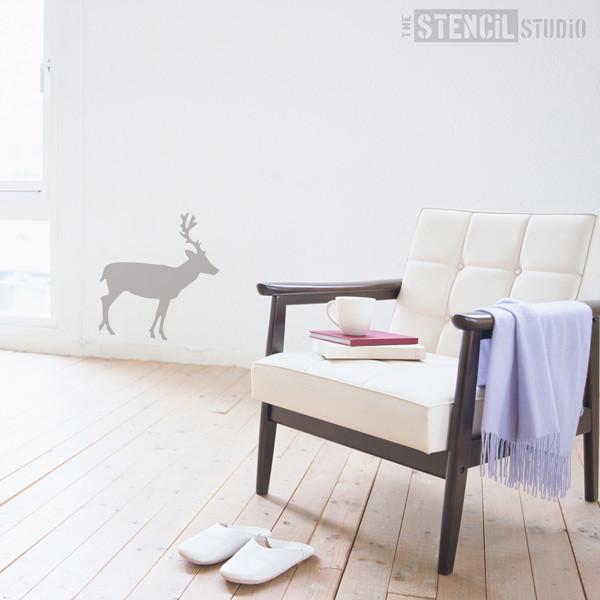 Simple and versatile deer stencil. A simple deer silhouette design ideal for DIY, home decor and other crafts. Our reusable Scandinavian inspired Mylar stencil can be repeated as a border on plain walls or an all over pattern to create a cost effect wallpaper / feature wall. One stencil can decorate a whole room!