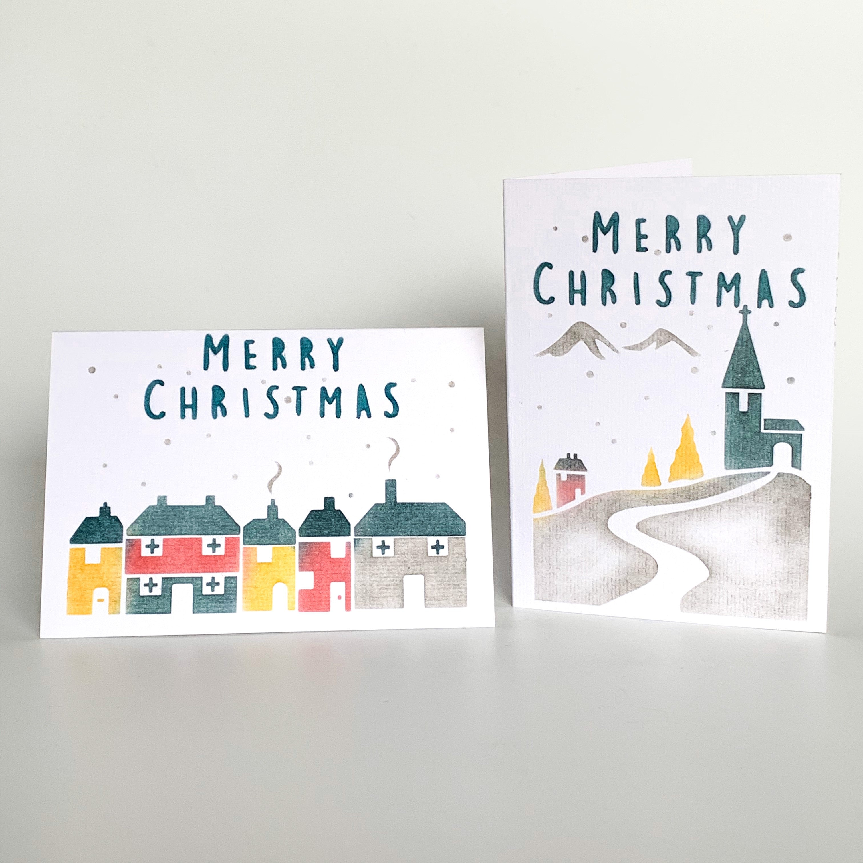 Festive Snowy Church Card, Tag & Wrap Christmas Stencil Set