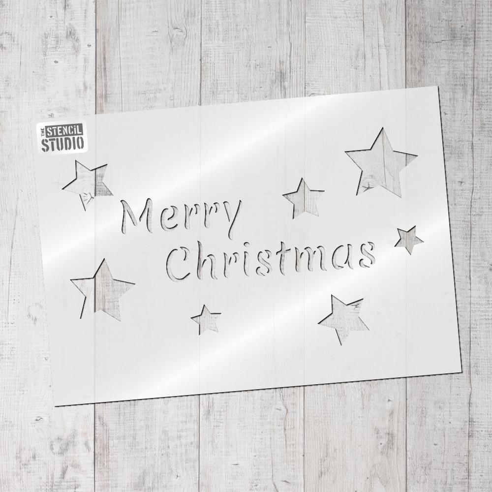 Merry Cristmas Stars Card, Tag & Wrap Christmas Stencil Set