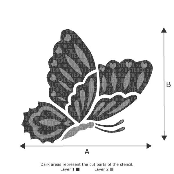 Pretty 2 layer Butterfly stencil, paint the wings and body with stencil layer 1 and then apply stencil layer 2 for the wing details, simple and effective. This design is available in lots of sizes.