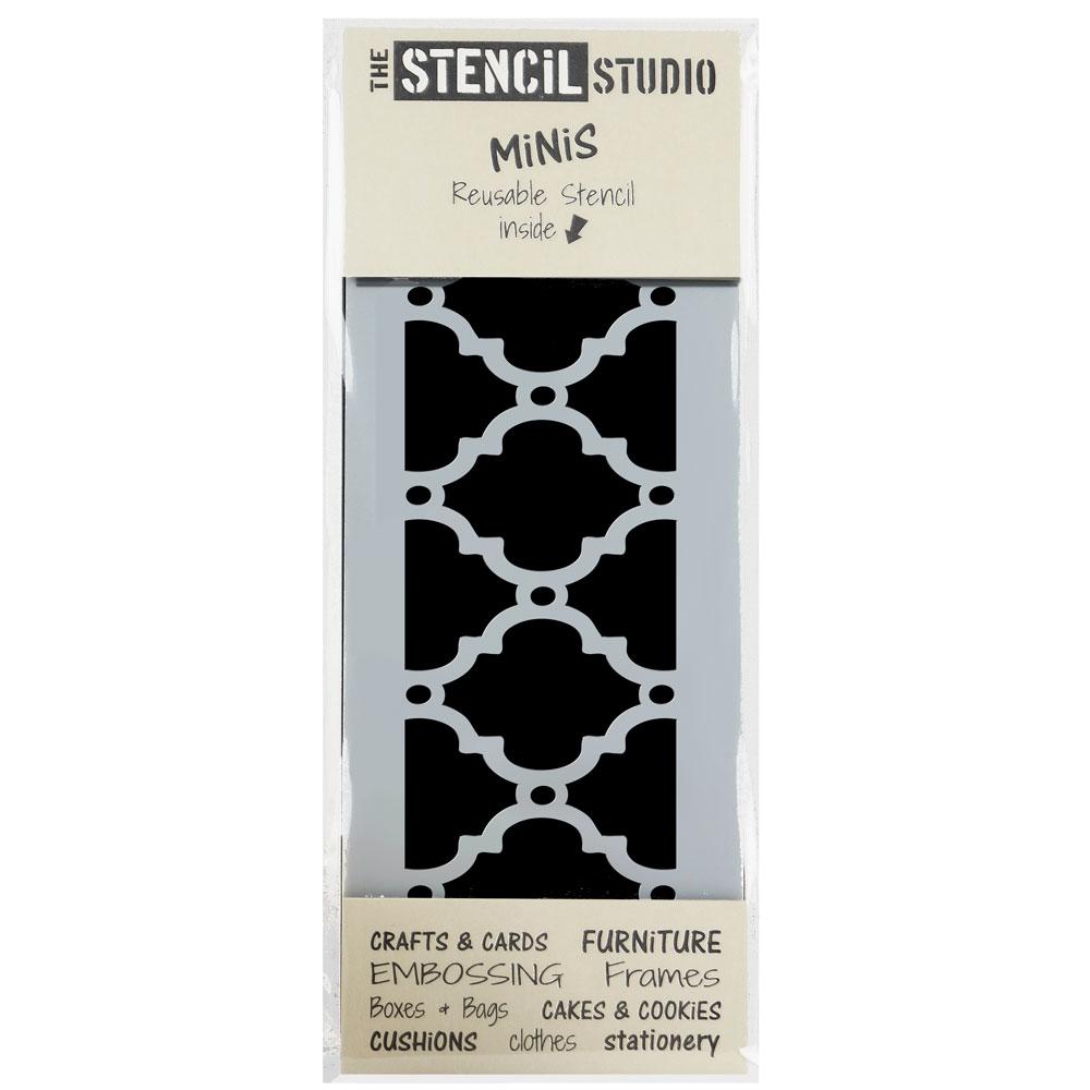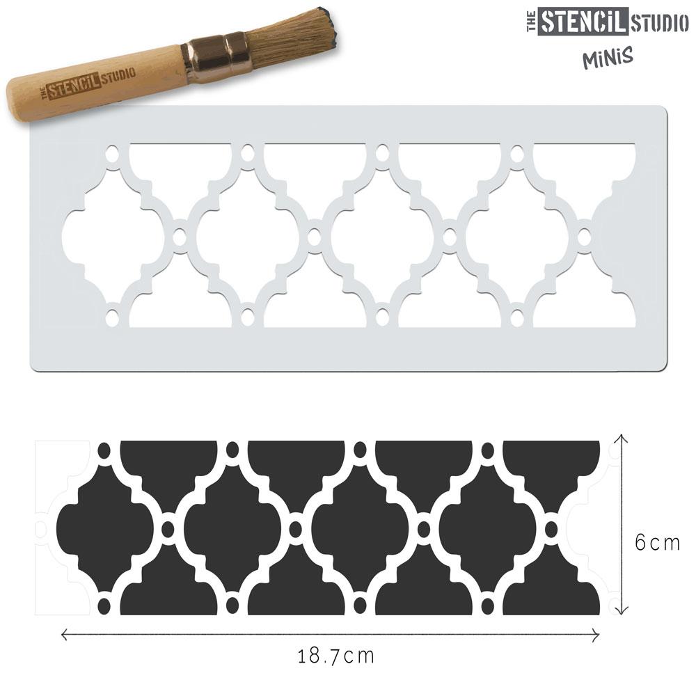 Simple but effective all over geometric stars and shapes stencil, a traditional Moroccan pattern. Relocation marks are etched onto the stencil for easy and accurate repeating of the pattern.