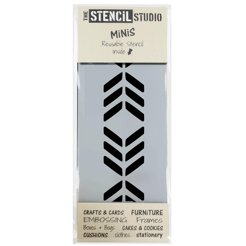 This Stencil MiNi features two rows of concentric lines forming a reflected chevron border, useful for decorating furniture and all manner of re-purposing and re-vamping projects in the home and garden.