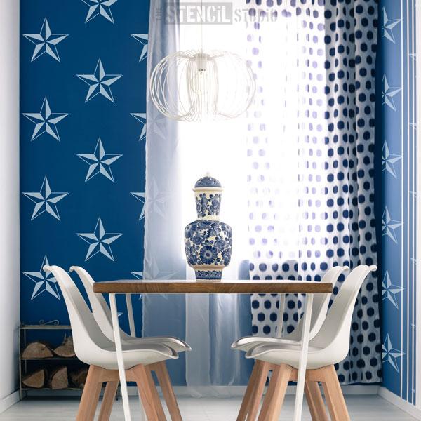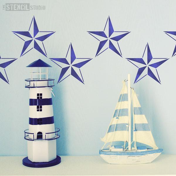 Nautical star shape stencil, available in various sizes and a handy multi-pack too. This is a simple-to-use but effective and stylish design which would work great on bathroom walls or in a child's room, adding a touch of seaside chic to your room scheme.