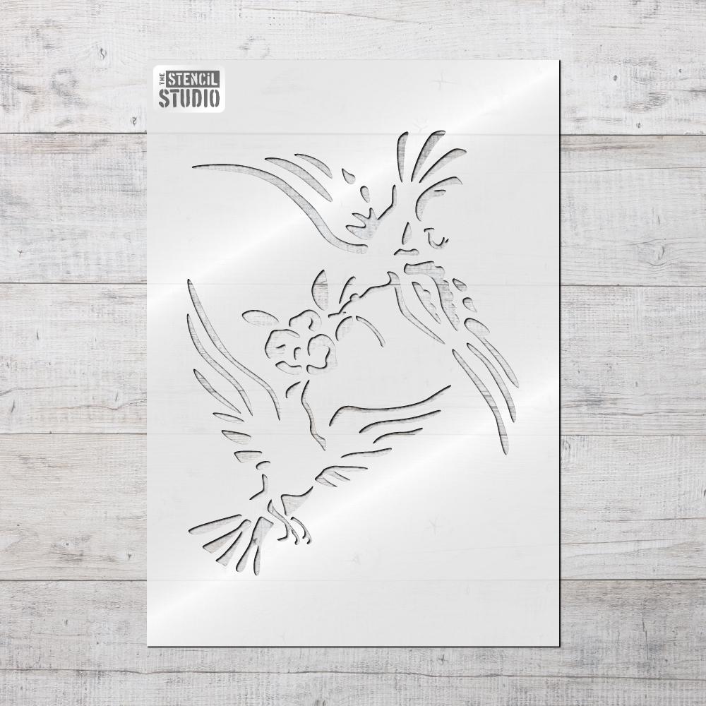 2 Beautiful Doves holding a Rose Flower in this vintage label stencil. Add this lovely stencil to your shabby chic collection for painting furniture and fabrics.