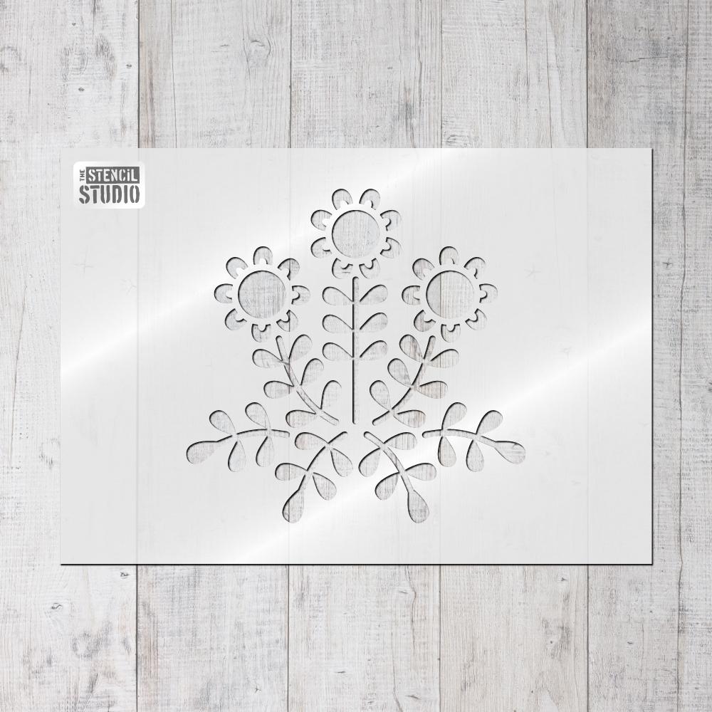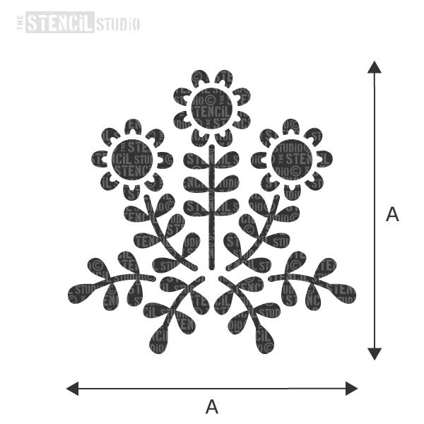 Marjorie flowers motif with symmetrical leaf pattern stencil. Use this stencil to add detail to furniture, fabric and walls.