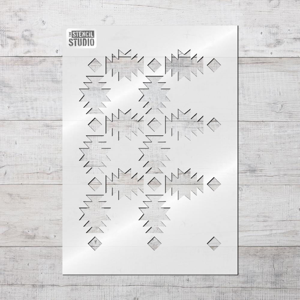 Geometric pattern repeat stencil. Repeats in all directions for an all-over wallpaper effect pattern. Use this stencil to add detail to furniture, fabric and walls.