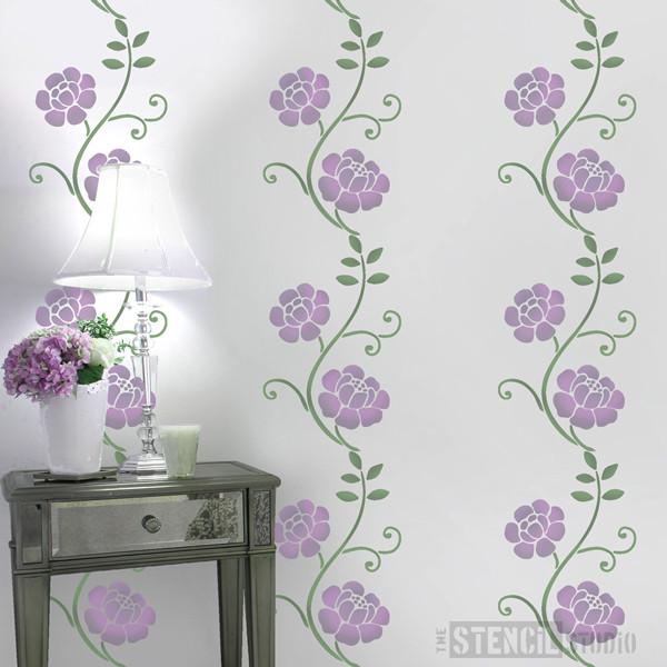 Flower blossoms and meandering stems form a repeatable pattern with our Wallflower stencil. This versatile design can be used as a border or all over pattern for any room.